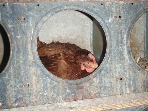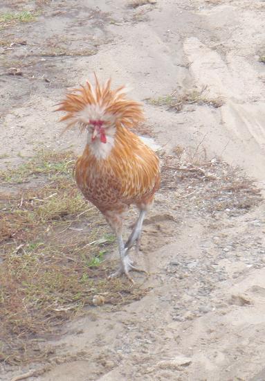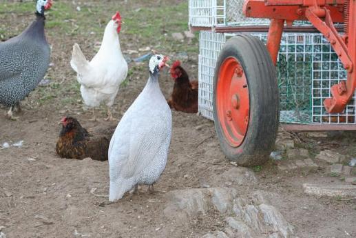 During the day the chickens have free range of the farm, here are a few taking a nice dirt bath (they clean their feathers by working dirt through them), with a few guinea hens watching over