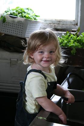 Perhaps the hardest worker on the farm, Sam does it all, puts the flag out, works in the tunnel, plants and washes the veggies. Bennett is right behind him every step of the way.
