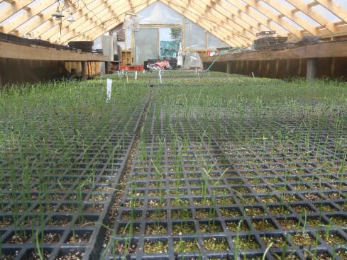 Onions growing in the new greenhouse! Just short of 10,000 onions planted this season