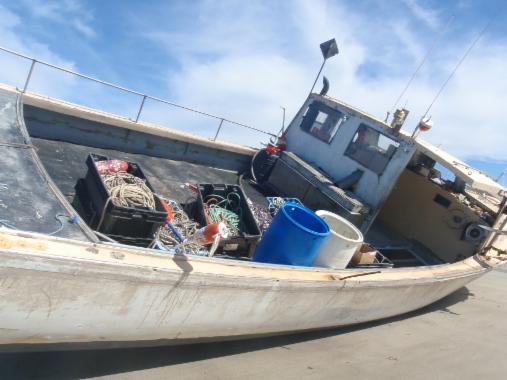 The Patricia Ann beached at Kettle Cove for a little Spring Cleaning