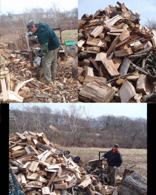 Lincoln restocks the wood pile in the Spring after a long cold Winter