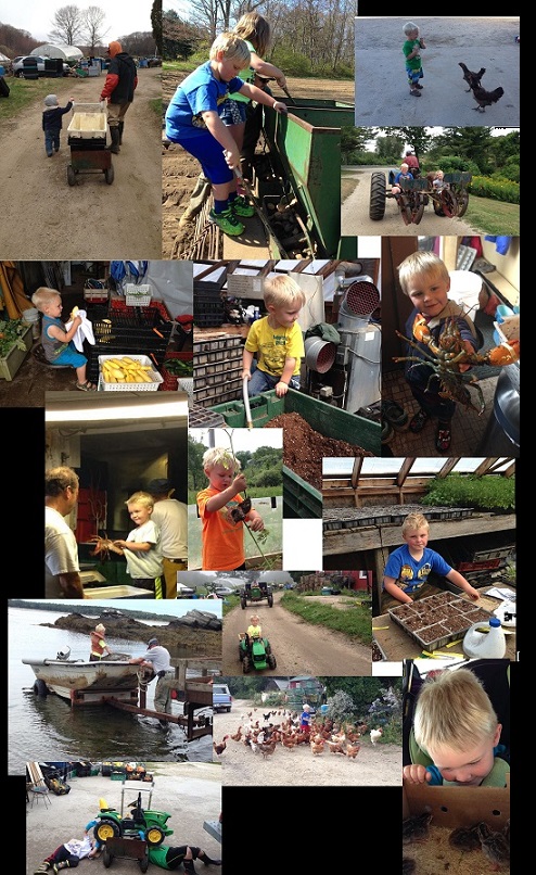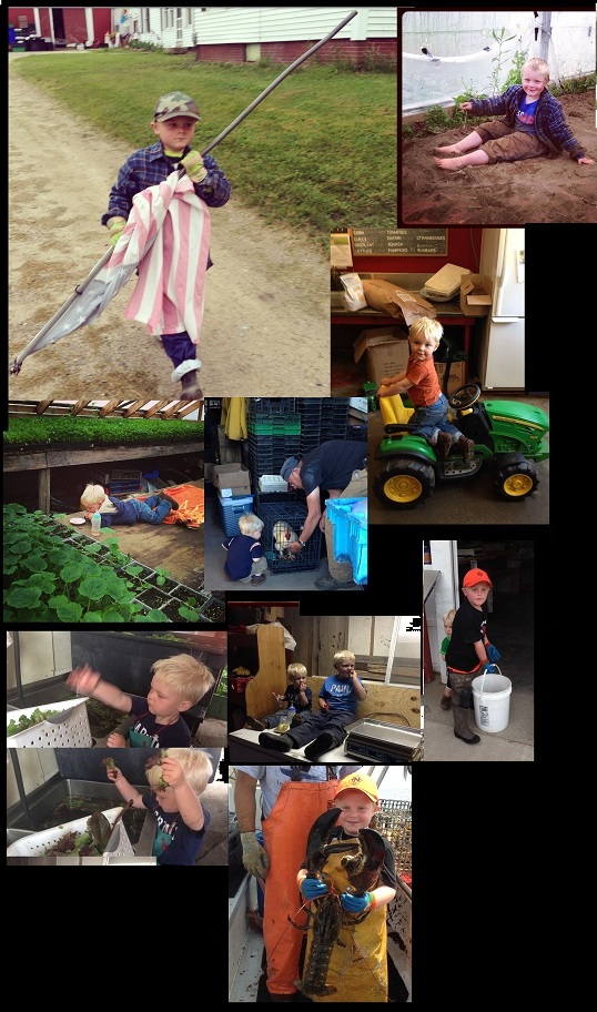 Bennett and Jodie work all day long together, Sam and Emery plant potatoes, Bennett working in the barn and greenhouse, and deciding all the time he needs lobster for lunch! Bennett goes for his first boat ride, and Sam and Bennett "work" on their tractor to "fix it".
